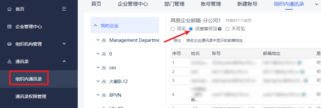 企业通讯录仅搜索可见